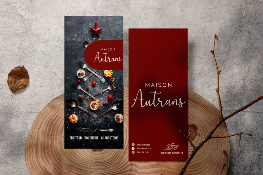 Projet de communication de fin d'année pour un traiteur, autour de la mise en valeur des produits festifs et des menus de Noël à réserver. Création de supports imprimés (dépliants en boutique) et de contenus digitaux déclinés pour les réseaux sociaux, avec une diffusion locale ciblée sur Instagram, Facebook et les groupes de communes dans un rayon de 30 km.